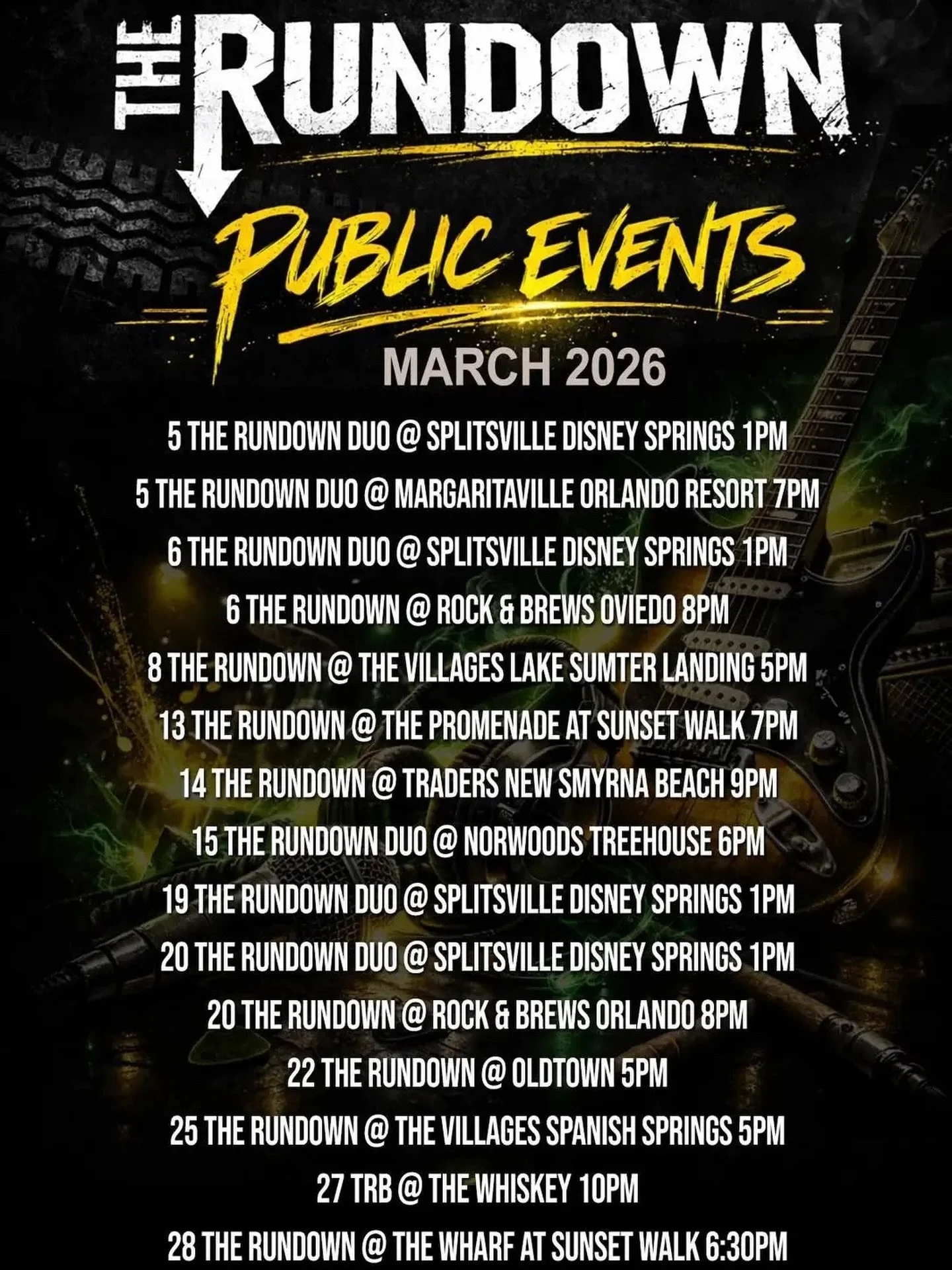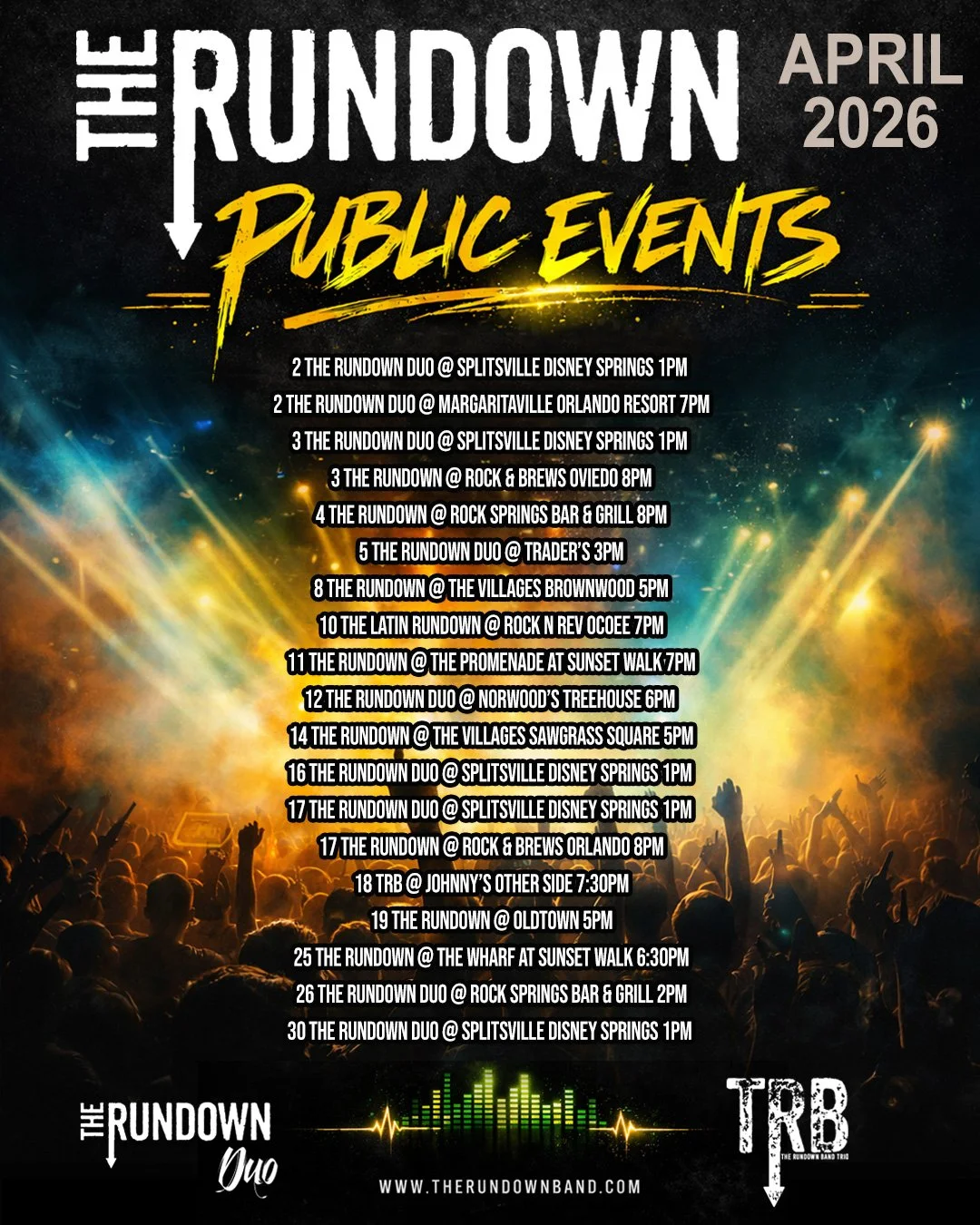 The Rundown is a high energy experience with great variety of music, from Classic Rock, 80’s, 90’s, Pop, and even Country. They have performed with acts like Bobby Kimball (Original singer from Toto), Steve Augeri (of Journey fame), Tiffany (80's Pop Singer) and Night Ranger's Kelly Keagy among others.